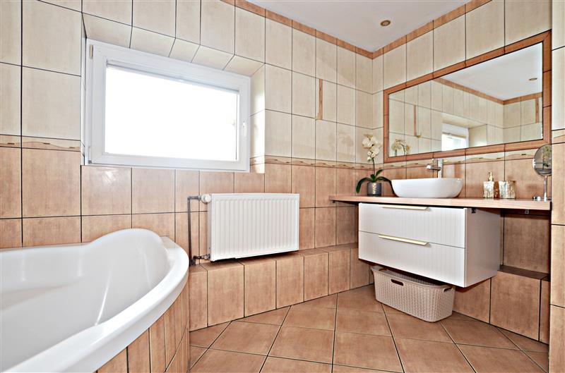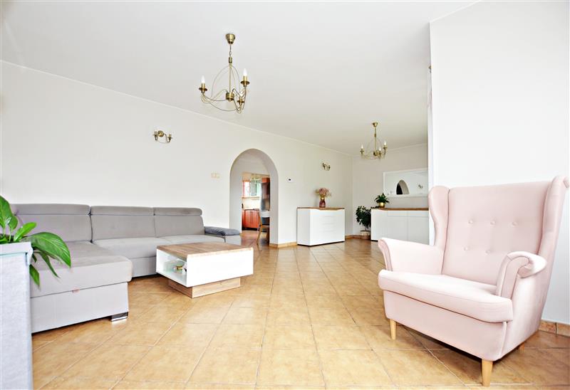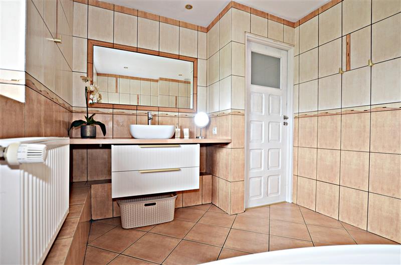 Nieruchomość rozłożona jest na kilku kondygnacjach, więc zapewni swobodę wszystkim członkom nawet licznej rodziny. Zadbane podwórko umili wspólny czas na świeżym powietrzu. Parter domu posiada klasycznie przestronny, jasny salon (30,4m2) z wyjściem na taras, z którego schodami wyjdziemy na ogród. Ponadto na tym poziomie znajduje się jadalnia (7,7m2), zabudowana i wyposażona kuchnia (8,6m2) ze sprzętami, piękna łazienka z kabiną prysznicową i z wc (5,2m2), funkcjonalny hol (7,1m2) i korytarz (2,8m2).