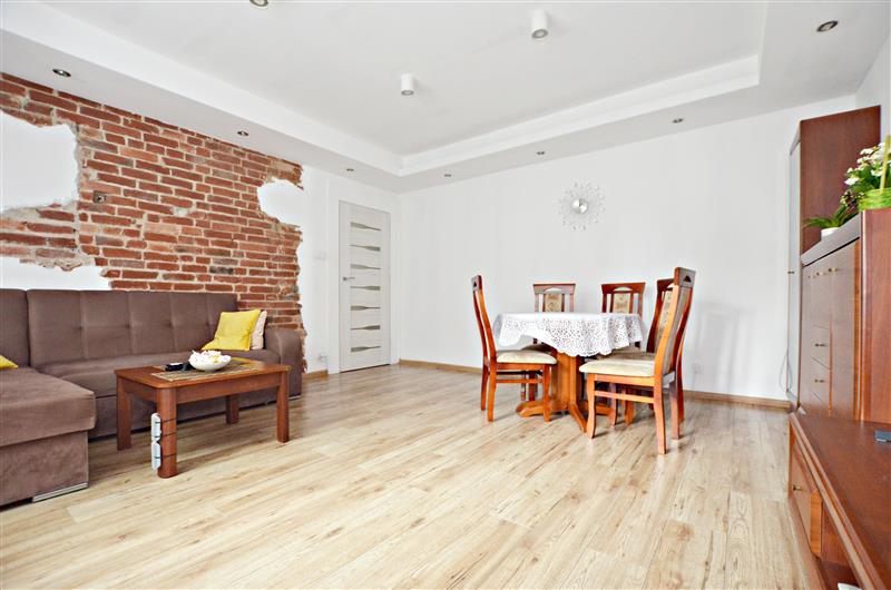 Wyjątkowy styl starej kamienicy został zachowany we wnętrzach tego mieszkania, np. kawałek ściany ze starą cegłą, oryginalne deski na podłodze w sypialni i jadalni cyklinowane w 2024r, oryginalne drewniane drzwi wejściowe oraz futryny wewnętrzne. Lokal wyposażono w nowe okna plastikowe, wymieniono instalację elektryczną, skompletowano kuchnię w piękną zabudowę, przeznaczono część sypialni na dużą garderobę jednocześnie rezygnując z szaf w pomieszczeniach, położono kafle w łązience i kuchni oraz panel w salonie i werandzie.