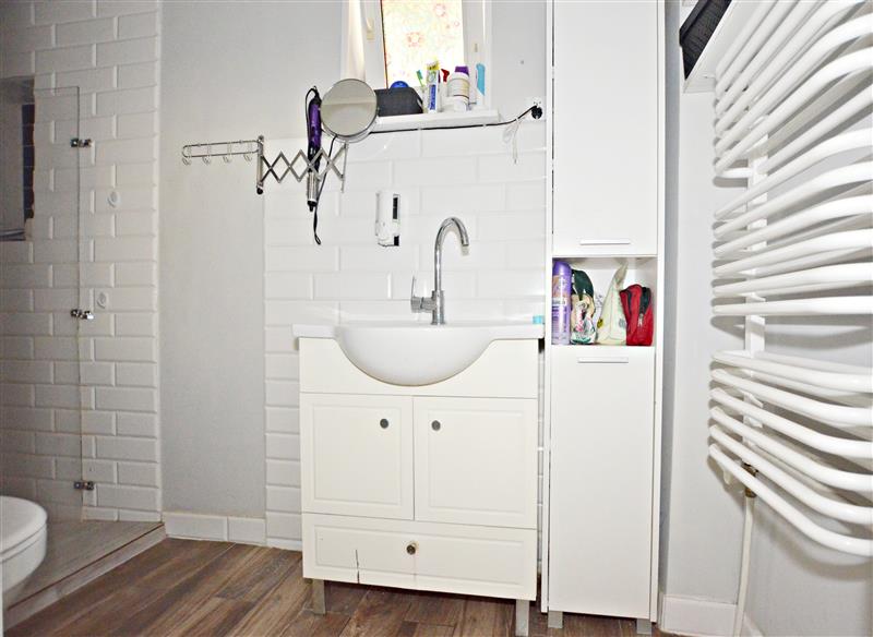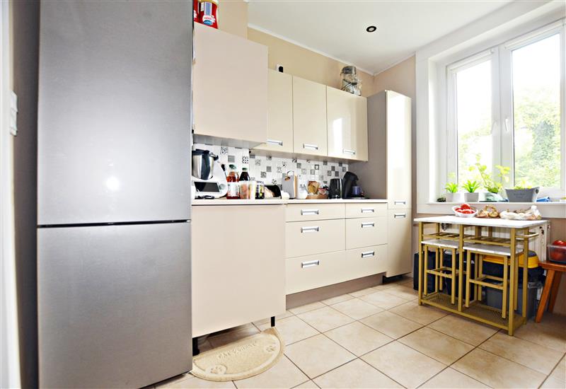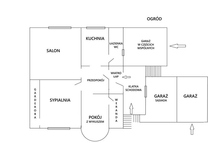 Ponadto do lokalu przynależy garaż murowany z bezpośrednim wjazdem od ulicy, wyposażony w kanał oraz aż 4 piwnice o łącznej powierzchni 31,10m2. W częściach wspólnych tej nieruchomości właściciele mieszkania umownie z sąsiadami (jedynymi) korzystają z drugiego garażu, ogrodzonego ogrodu podzielonego na pół oraz z części wspólnej w podpowniczeniu gdzie znajduje się wyjście na ten ogród. Właściciele pomysłowo w jednej ze swoich piwnic urządzili letnią kuchnię z wc co ułatwia komunikację w czasie spędzanym na świeżym powietrzu.