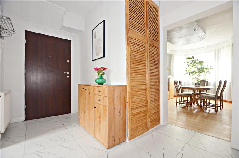 Mieszkanie o 2 stronnej wystawie okiennej prezentuje bardzo dobry standard i cechuje się komfortową przestrzenią użytkową, którą każdy może zaaranżować według własnych potrzeb. Aktualnie składa się z przestronnego, ustawnego salonu, sypialni z ukrytą garderobą, świetnie doświetlonej jadalni dzięki wykuszowi, osobnej wyposażonej kuchni z oknem, wygodnej łazienki z wc i z natryskiem o odpływie liniowym, funkcjonalnego przedpokoju, wiatrołapu, z którego bezpośrednio zejdziemy do piwnic oraz słonecznej oszklonej werandy, która dziś pełni rolę kącika do wypoczynku przy dobrej książce lub muzyce ale spełni się również świetnie jako oranżeria!