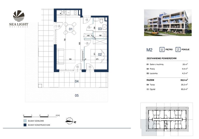 Prezentujemy dwupokojowy apartament o powierzchni 39,90 mkw z tarasem i ogródkiem położony na parterze.