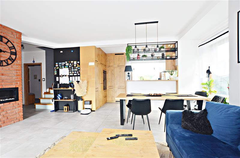 Wybudowany przez pierwszych i jedynych właścicieli nowoczesny dom z 2021r. wykończony został w bardzo dobrym standardzie i wyszukanym guście. W skład jego metrażu wchodzi: