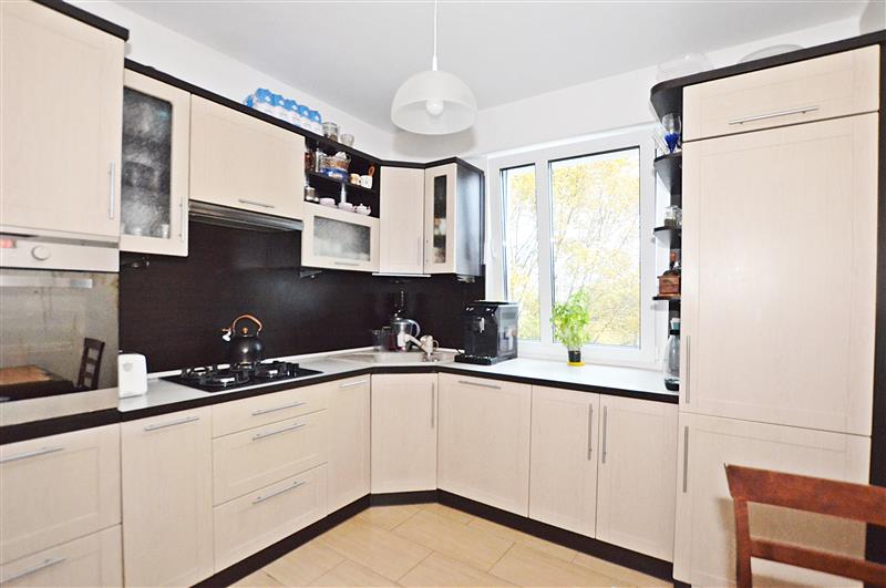 Mieszkanie jest w pełni umeblowane, a kuchnia posiada cały niezbędny sprzęt AGD w zabudowie.