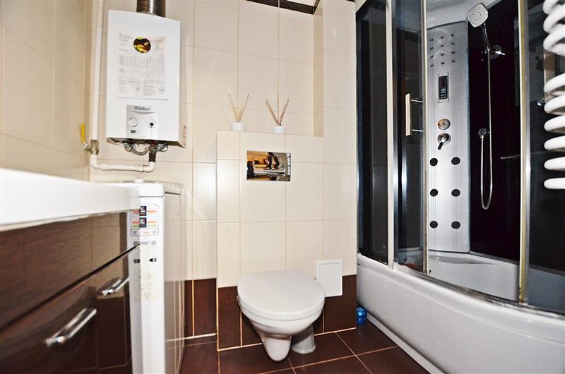 - stylowo wykończoną łazienkę z kabiną prysznicową i toaletą,