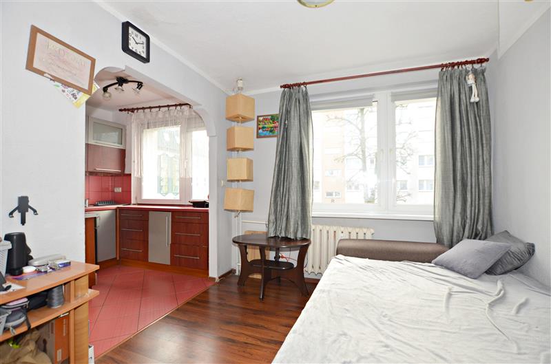 Nieruchomość o powierzchni 37,10m2 składa się z salonu połączonego z kuchnią, ustawnej, dużej sypialni z wyjściem na balkon, przedpokoju z szafą w zabudowie oraz łazienki z wc. Do mieszkania przynależy także piwnica.