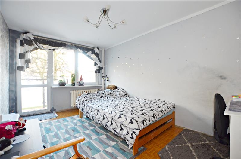 Mieszkanie wymaga odświeżenia lecz na wyposażeniu znajdziemy plastikowe okna, panele w salonie, wymienione drzwi wejściowe. W cenie pozostaje również skompletowana kuchnia z lodówką, kuchenką i piekarnikiem elektrycznym oraz pralką w łazience.