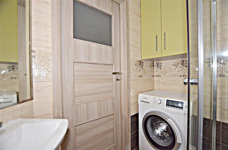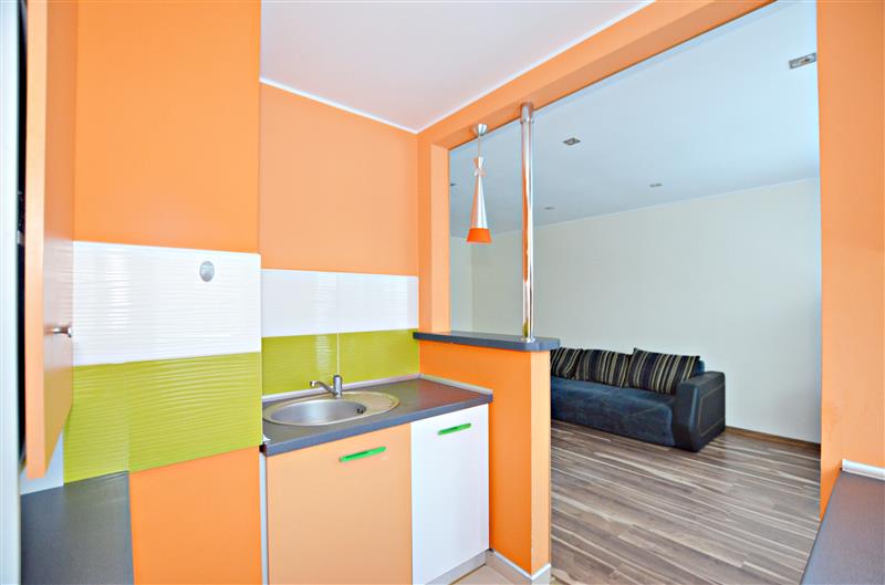Nieruchomość o powierzchni 36,64m2 składa się z ustawnego salonu z wyjściem na balkon oraz dużą wnęką, która może pełnić dodatkowe, rozmaite funkcję np. garderobę, biuro czy biblioteczkę. Podkreślona energetyzującym kolorem, otwarta na salon kuchnia z oknem skompletowana została w niezbędny sprzęt taki jak podblatowa lodówka, zmywarka w zabudowie, okap czy płyta indukcyjna. Osobna sypialnia z kanapą i szafą w zabudowie posłuży jako sypialnia, pokój dziecięcy czy gabinet. Pozbawiona już junkersa łazienka z wc została odrestaurowana i wyposażona w kabinę prysznicową oraz pralkę. Estetycznie zagospodarowany przedpokój zyskał nowe drzwi wejściowe i wewnętrzne oraz nowe kafle podłogowe.