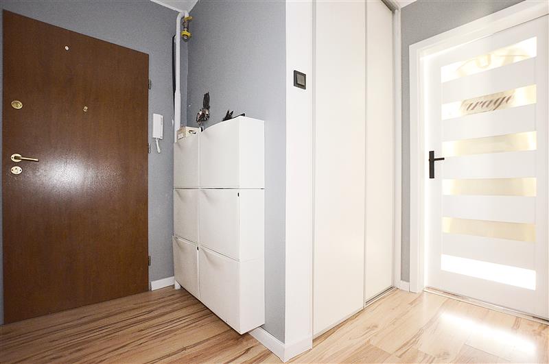 - wydzieloną niewielką, funkcjonalną garderobę,