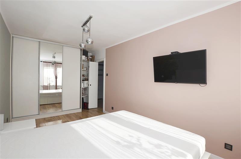 - nowocześnie urządzoną główną sypialnię z pojemną szafą przesuwną w zabudowie,